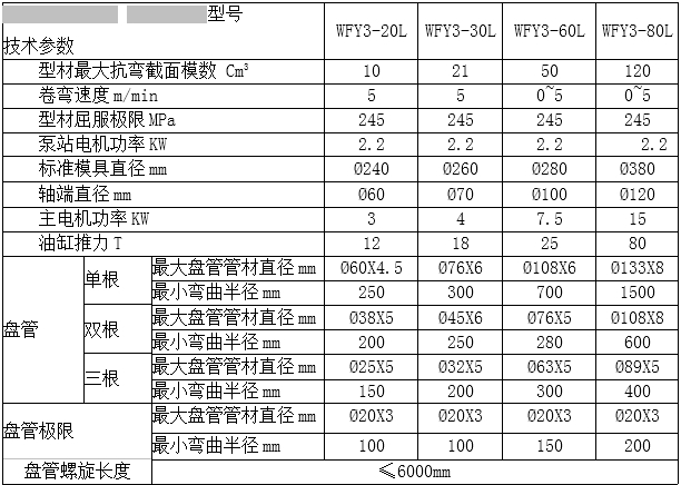 WFY3-20L/30L/60L/80L三輥盤管機(jī)參數(shù)