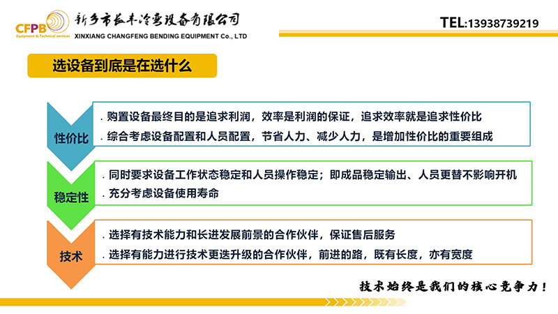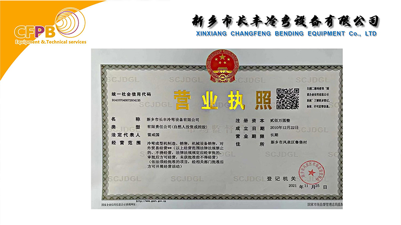 新鄉(xiāng)市長豐冷彎設(shè)備有限公司,是一家通過認證的、擁有自主知識產(chǎn)權(quán)和自主研發(fā)制造能力,獨立進行冷彎成型設(shè)備的制造、銷售,和服務于一體的高新技術(shù)企業(yè)。