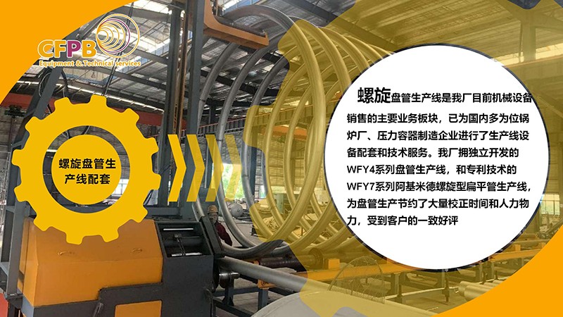 螺旋盤管生產(chǎn)線是我廠目前機械設(shè)備銷售的主要業(yè)務板塊,已為國內(nèi)多為位鍋爐廠、壓力容器制造企業(yè)進行了生產(chǎn)線設(shè)備配套和技術(shù)服務。我廠擁獨立開發(fā)的WFY4系列盤管生產(chǎn)線,和擁有專利技術(shù)的WFY7系列阿基米德螺旋型扁平管生產(chǎn)線,為盤管生產(chǎn)節(jié)約了大量校正時間和人力物力,受到客戶的一致好評。
